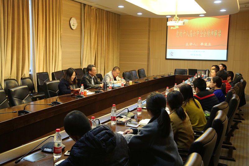 为进一步推进“两学一做”活动的开展,深入学习党的十八届六中全会精神,11月17日下午,研究生院党支部开展十八届六中全会专题学习活动,李俊生副校长深入所在基层支部,为研究生院党员同志讲了题为《党的十八届六中全会精神解读》的党课,带领大家一起学习了党的十八大以来,尤其是十八届六中全会召开后党中央治国理政的新理念、新思想、新战略。研究生院党支部书记徐淼主持了本次学习活动。