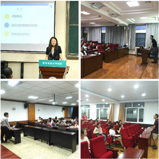 学校层面,6月5日-6月9日,由研究生院组织,研究生院副院长徐淼带队,我校研究生招生宣讲团先后赴成都、天津、厦门、武汉、长沙5个重点生源城市,分别在四川大学、河北工业大学、厦门大学、华中师范大学、武汉理工大学、湖南师范大学等6所重点高校开展了多场招生宣讲会。研究生招生办公室、财政税务学院、金融学院、会计学院、法学院、管理科学与工程学院、中国经济与管理研究院、国际经济与贸易学院、人力资本与劳动经济研究中心、统计与数学学院等部门和招生单位负责人、教授近15人分赴各地完成了招生宣讲工作,来自上述高校及周边高校的近三百余名本科生参加了招生宣讲。