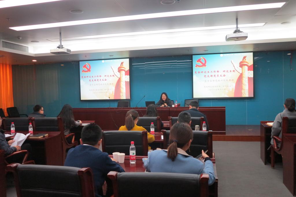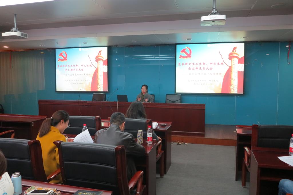 为从“深”处学习、从“新”处宣传、从“实”处贯彻党的十九大精神,2017年11月10日下午,党委研究生工作部、研究生院党支部全体教工在学术会堂702召开全体党员会议,开展学习活动,会议由徐淼书记主持。