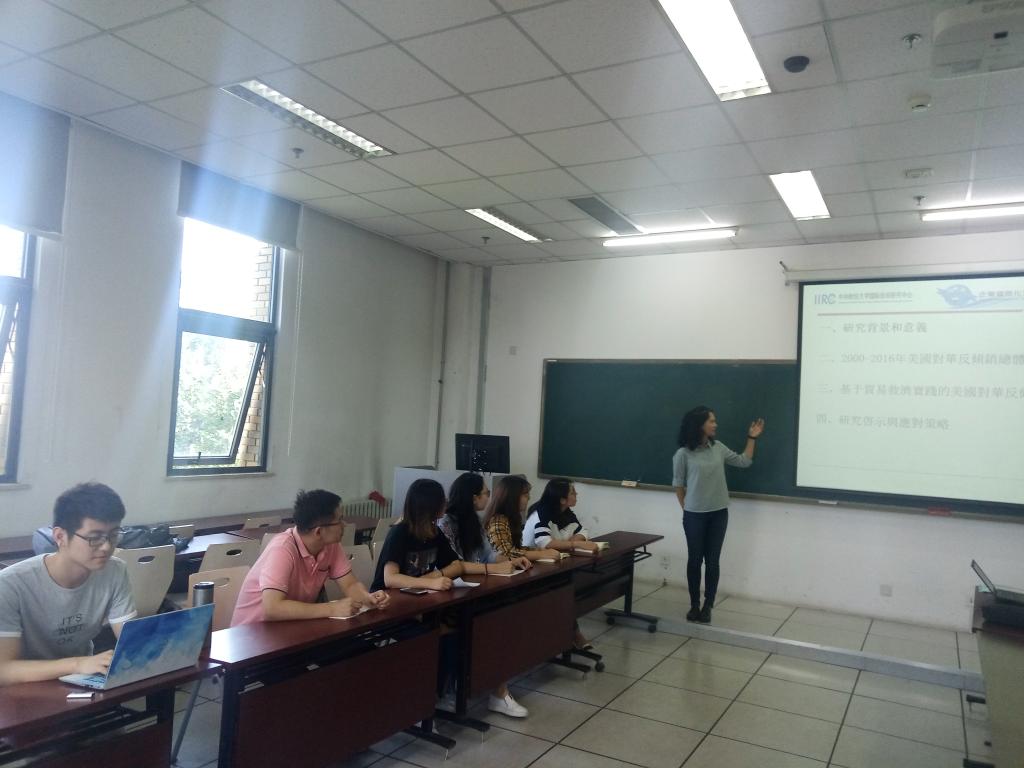 6月4日返回学校后,郭蕊同学就会议交流情况与我校师生进行了充分的交流,并于6月9号在沙河校区三号楼311教室进行了一场公开学术报告会,财经研究院的老师、学生以及国际经济与贸易学院的部分博士生、硕士生参加并为该篇论文的框架结构提供了宝贵的建议。在会议上,郭蕊同学就论文的研究方法、研究内容、政策建议进行了简要的介绍,在中美贸易战如火如荼进行着的时候,郭蕊同学的文章对应对接下来可能大规模爆发的国家间反倾销调查有较强的政策意义,此次分享更加调动了同学们的科研热情。