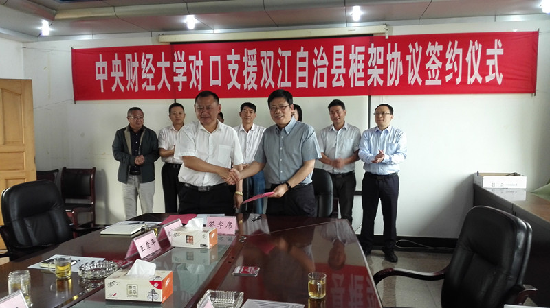 2017年4月13日,我校副校长史建平、研究生院副院长王红梅、金融学院郭剑光、对口支援工作办公室田光华等一行四人赴云南省双江自治县调研,签订对口帮扶合作框架协议。双江自治县县长普润清、我校赴双江挂职干部林存银和县委四大班子主要成员,出席了签字仪式。仪式由双江自治县常务副县长肖磊主持。